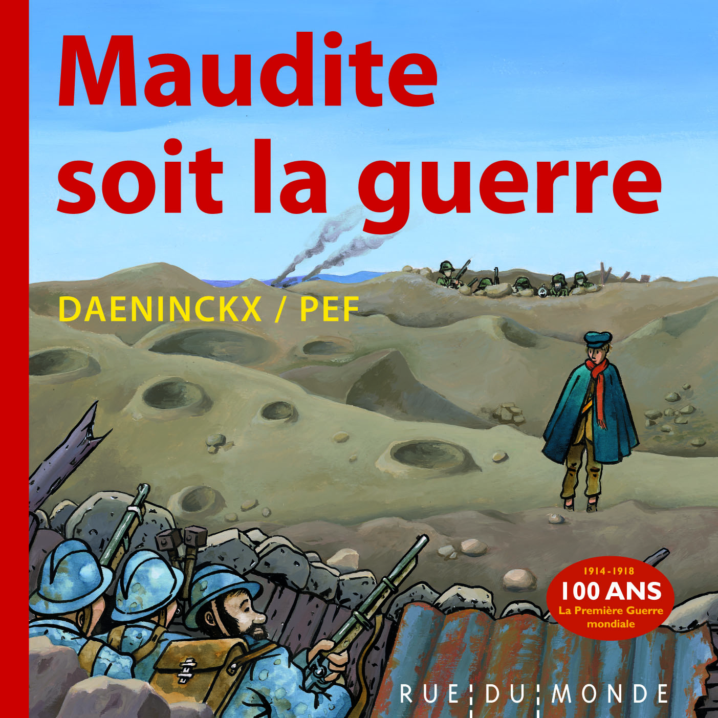 Maudite soit la guerre, écrit par Didier Daeninckx raconte l’histoire de Fulbert, un garçon de 11 ans qui décide d’amener lui-même à son père sa lettre rédigée en classe. Une escapade secrète et périlleuse qui mène Fulbert dans les tranchées près du Chemin des dames… Une fiction poignante inspirée par le monument aux morts du village de Gentioux qui dénonce la guerre briseuse de vies. À la fin de l’album, des documents donnent des repères historiques.