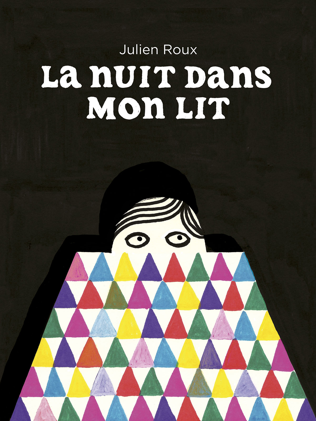 La nuit dans mon lit explore l’angoisse du noir à travers l’imaginaire d’un enfant dont la couverture aux triangles multicolores se transforme en monstres des ténèbres. Contre toute attente, ces formes géométriques donnent un air sympathique et familier à ces affreux personnages… et l’enfant finit par se laisser aller dans les bras de Morphée. Voilà un album aux illustrations contrastées pour aider les enfants à lutter contre leur peur car « ce qui effraie n’existe nulle part ailleurs que dans les yeux de celui qui a peur. » En voici un extrait.